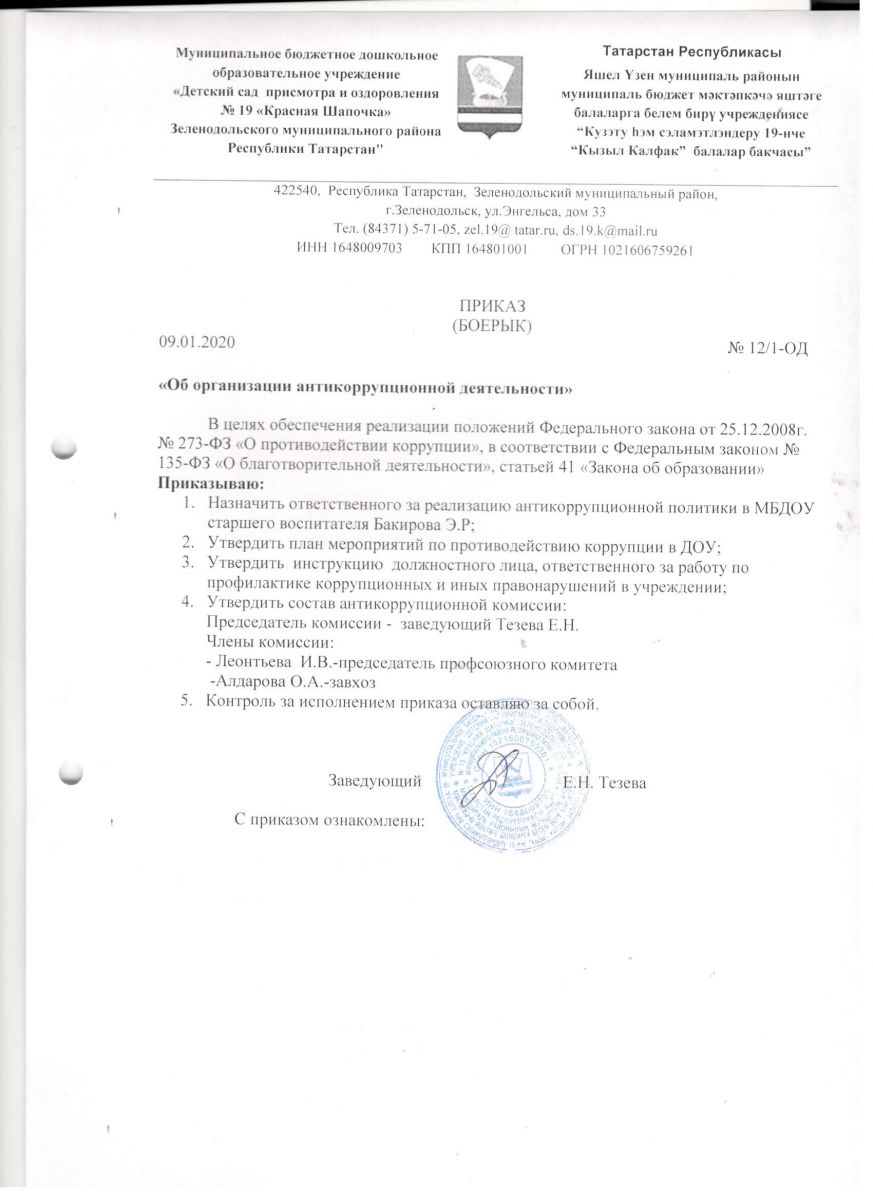 Муниципальное бюджетное дошкольное образовательное учреждение "Детский сад присмотра и оздоровления №19 "Красная Шапочка" Зеленодольского муниципального района Республики Татарстан"/Татарстан Республикасы Яшел Yзен муниципаль районың муниципаль бюджет мәктәпкәчә яшьтәге балаларга белем бирү учреждениясе “Кузэту hэм сэламэтлэндеру 19- нчы“Кызыл Калфак” балалар бакчасы”