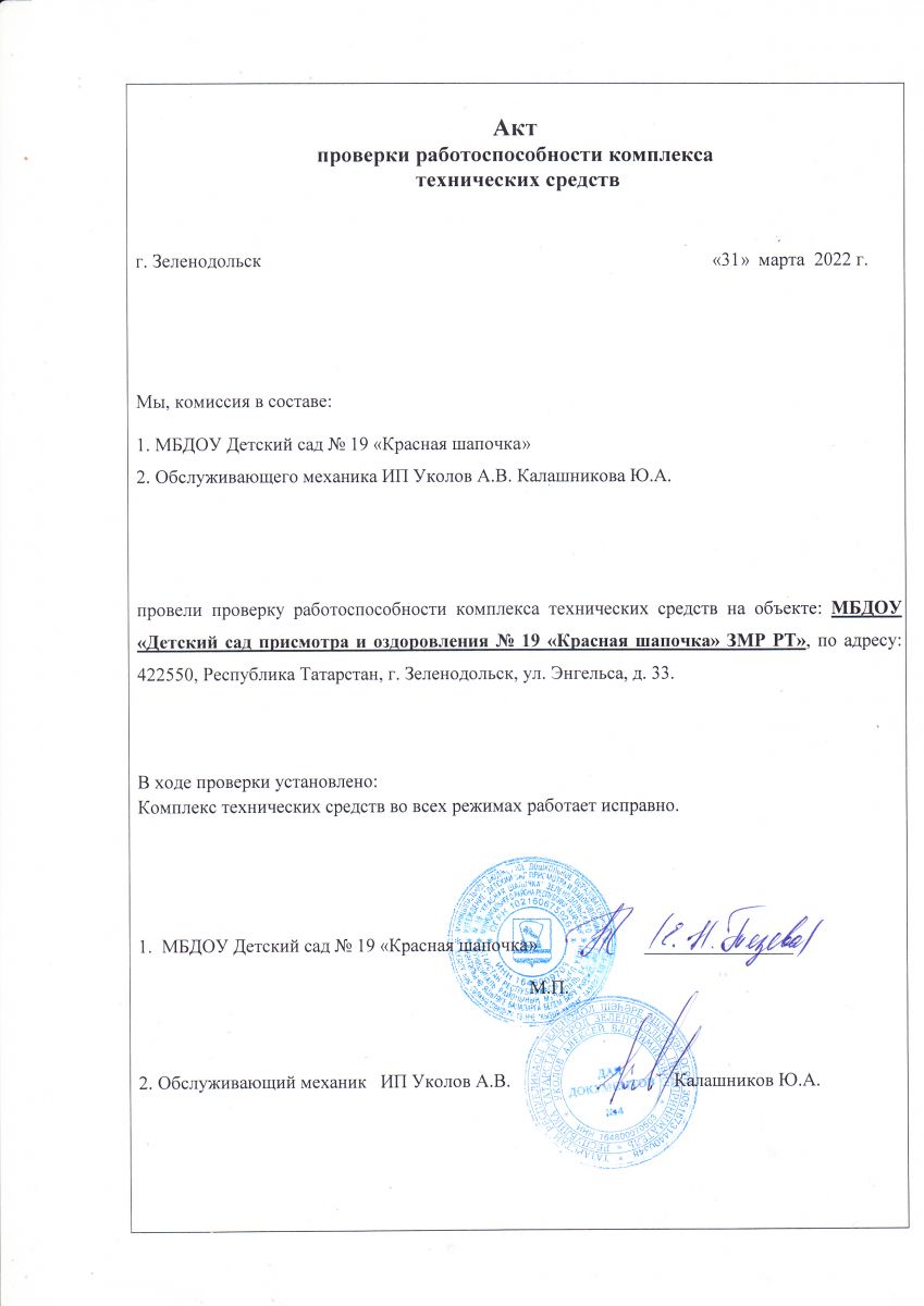 Акт проверки работоспособности ктс