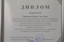 Учреждение педагогы Ю.с. Трошкова "юлда балаларның куркынычсыз тәртибен формалаштыруда мультипликация" муниципаль конкурсында катнаша һәм мактаулы 2 урынны ала. Котлыйбыз!