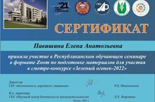Воспитатель Павишина Е.А. приняла участие в Республиканском обучающем семинаре в формате Zoom по подготовке материалов для участия в смотре-конкурсе "Зеленый огонек - 2022". / Тәрбияче Павишина Е. А. "Яшел ут-2022"смотр - конкурсында катнашу өчен материаллар әзерләү буенча Zoom форматындагы республика укыту семинарында катнашты.