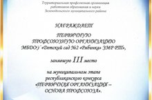 Территориальная профсоюзная организация работников образования и науки Зеленодольского муниципального района наградила первичную профсоюзную организацию МБДОУ №2 "Рябинушка" ЗМР РТ, занявшую 3 место на муниципальном этапе республиканского конкурса "Первичная организация - основа профсоюза". / Яшел Үзән муниципаль районы мәгариф һәм фән хезмәткәрләренең территориаль профсоюз оешмасы "башлангыч оешма - профсоюз нигезе" республика конкурсының муниципаль этабында 3 нче урынны алган ТР Яшел Үзән муниципаль районы 2 нче номерлы "Миләшкәй"балалар бакчасы башлангыч профсоюз оешмасын бүләкләде.