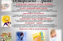 В целях профилактики гриппа и ОРВИ в течение года необходимо соблюдать режим дня, включающий прогулки на свежем воздухе; рационально питаться (свежие овощи и фрукты, молочнокислые продукты, рыба, мясо); проводить закаливающие процедуры; делать зарядку; мыть руки с мылом или протирать дезинфицирующими средствами.
