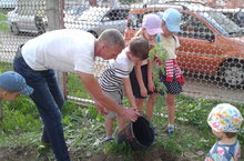 В детском саду прошла акция "Посади дерево". Дети подготовительной группы, совместно с родителями, продолжили аллею выпускников, посадив 12 саженцев рябин.