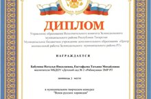 Воспитатели детского сада Бабунова Н.Н. и Евстафьева Т.М. награждены дипломами за 3 место в муниципальном творческом конкурсе "Венок русских хороводов". Поздравляем коллег с победой и желаем дальнейших творческих успехов!!!