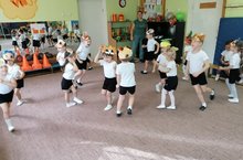 Балалар бакчасында Көзге бәйрәмнәр дәвам итә. Төрле яшьтәге балалар җырлыйлар, бииләр, шигырьләр укыйлар һәм уйныйлар. -