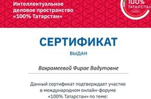 Халыкара онлайн форум "Мәгариф. Фән һәм технологияләр. Хезмәт базары" исемле күргәзмәсе 2021 елның 12-14 августында www.100tatarstan.com узды, ул үз мәйданында Татарстан Республикасы Хөкүмәте, Мәгариф һәм фән өлкәсендә экспертлар, бизнес, Республиканың эшлекле партнерларын, мәгариф учреждениеләре хезмәткәрләрен, ата-аналарны берләштерде. Форум «озынлыкка мәгариф " концепциясе кысаларында белем бирүнең барлык баскычларын колачлады һәм масштаблы программа тәкъдим итте. Безнең учреждение педагоглары әлеге форумда катнаштылар һәм катнашучылар сертификатлары алдылар.