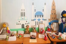 В рамках межмуниципального конкурса "Куклы народов Поволжья" в ДОУ была организована выставка кукол -оберегов,которые были сшиты руками педагогов. Куклы-обереги спасали человека от опасностей и отгоняли злые силы, болезни. Собираясь в дальний путь, человек брал с собой оберег, чтобы вложенные в него добро, вера и любовь согревали душу, напоминали об отчем доме и родной земле. Куклы-обереги делали небольшого размера и все разных цветов, это развивало зрение ребёнка./"Идел буе халыклары курчаклары" муниципальара конкурсы кысаларында балалар бакчасында, педагоглар куллары белән тегелгән курчаклар күргәзмәсе оештырылды. Курчаклар-обереглар кешене луркынычлыктан коткарган һәм явыз көчләрне, авыруларны куып чыгарган. Ерак юлга җыенганда, кеше үзенә салынган игелек, иман һәм мәхәббәт җанын җылытып, туган җире турында искә төшерсен өчен, сак алган.
