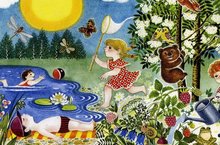 Хәзер инде безгә җәен саубуллашырга вакыт! Ә бүген бездә бәйрәм-җәй белән саубуллашу. Тик без моңсуланып тормыйбыз, җәйне күңелле уеннар, шаярулар белән уздырабыз./