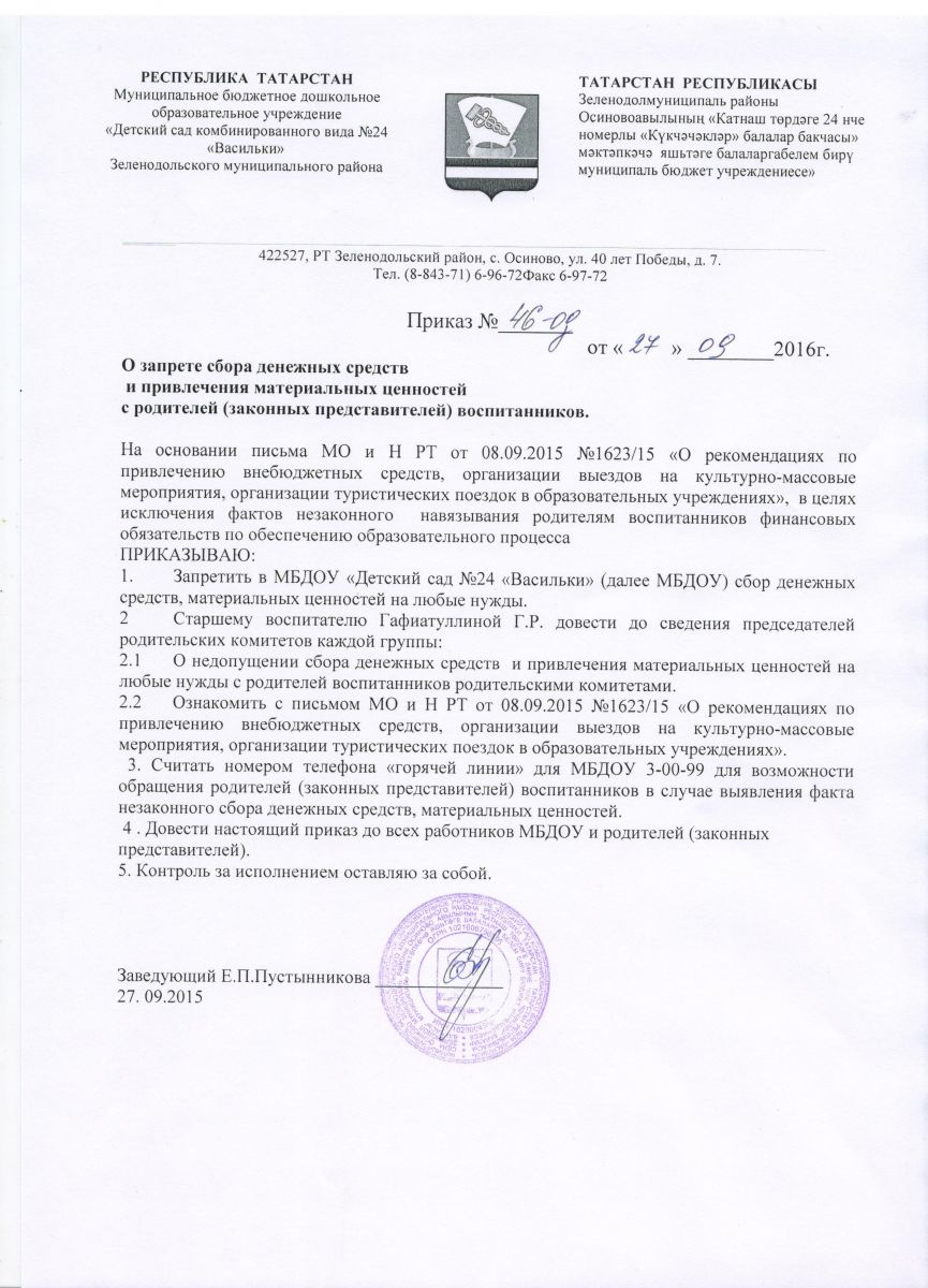 Короткое название: МБДОУ № 24 "Васильки" ЗМР РТ