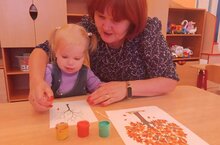 Мы собираем шишки и разноцветные листья, рассматриваем их, изучаем формы и оттенки. А ещё готовим осенние поделки совместно с родителями.