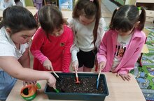 Вот и подошла пора посеять семена цветов для рассады. Дети подготовительной группы не остались в стороне и занялись таким интересным делом. Ребята посеяли семена астры, бархатцев, сальвии. Работали увлечённо и очень аккуратно!