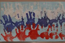 Дети второй младшей группы приняли участие в коллективной работе "Флаг в ладошках".