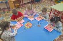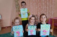 В качестве подарка дети 9 группы подарили Деду Морозу рукавички, которые раскрасили сами, используя нетрадиционную технику рисования (ватными палочками).
