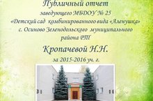 14 декабря 2016 г. в МБДОУ № 25 "Аленушка" прошло публичное выступление руководителя ДОУ по итогам 2015-2016 уч.г.