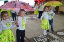 На праздник к ребятам приходила и сама хозяйка торжества – Золотая Осень. Вместе с ней ребята продемонстрировали красивый танец с зонтами и разыграли поучительную сценку о том, как важно быть трудолюбивым, отзывчивым и приходить друзьям на выручку. Завершился праздник общим танцем, и на этой веселой ноте ребята попрощались с гостьей до будущего года.
