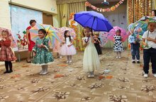 Следом за летом осень идёт, Жёлтые песни ей ветер поёт. Красную пóд ноги стелет листву, Белой снежинкой летит в синеву. В гости к детям пришли яркие и веселые осенние персонажи: старушка Слякоть, которая принесла лужи и непогоду, Гномик-лесовичок,развеселивший ребят своими играми, и, лесные зверушки с осенними дарами леса, и грибы-мухоморчики с веселым и смешным танцем, и, конечно же, сама красавица Осень.В конце развлечений, как всегда – угощения от щедрого урожая Осени – румяные яблоки и сочные груши для всех детей. И фотография на память в осенней фотозоне!