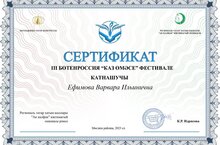 III БӨТЕНРОССИЯ “КАЗ ӨМӘСЕ” ФЕСТИВАЛЕ 21.12.2023 Воспитанница нашего детского сада Ефимова Варвара приняла активное участие в фестивале “КАЗ ӨМӘСЕ” Поздравляем!!! Молодец!!! Спасибо организаторам.