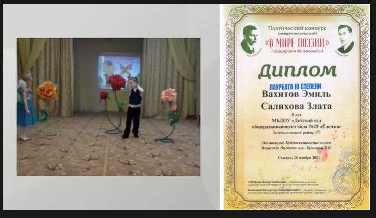 Вахивов Эмиль, Салихова Злата Г.Тукай "Ребенок и бабочка" - Лауреат 3 степени