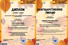Поздравляем Замалтдинову Самиру и Замалтдинову Мадину занявших первое место в международном конкурсе тематического оформления помещений "Встречаем осень".