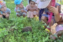 Сегодня во время прогулки дети обнаружили ежа. Когда дети его увидели, то были в восторге. Ежик был маленьким, серого цвета. Он спешил к себе домой. Детки окружив его, стали наблюдать за ним, и даже пытались потрогать его. Еж нисколько не испугался детей, сидел смирно и вытянул свою мордочку. Наблюдать за ним им было очень интересно. Дети узнали, что еж, несмотря на свои острые иголки, весьма полезное существо.