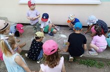 Сегодня дети, «вооружившись» цветными мелками, превратили асфальт в яркую летнюю поляну. В преддверие «Дня знаний» коллектив детского сада совместно с сотрудниками Айшинского Дома Культуры провели прекрасный праздник для наших воспитанников. Юные художники творчески подошли к своим «картинам» на асфальте, получив не только море удовольствия и позитивного настроения, но и замечательные подарки!