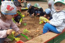 Игры с песком – любимая детская деятельность. Невозможно представить участок ДОУ летом без песочницы. Значение игр с песком огромно. Поскольку игры с песком организуются на свежем воздухе в тёплый период времени, они способствуют оздоровлению и закаливанию. Дети знакомятся со свойствами песка (сухой, мокрый), постигают приёмы строительства из него. Действия с песком развивают мелкую моторику, ручную умелость. Создание и обыгрывание построек обеспечивает развитие детского творчества. Воспитатели вместе с детьми, выходя на прогулку, выносят материал для выполнения построек из песка: пластмассовые ведёрки, совки, лопатки, формочки, а также легко моющиеся игрушки для обыгрывания: машины, пластмассовые образные игрушки (куклы, фигурки зверей). Все постройки, сделанные детьми, получаются яркими и привлекательными.