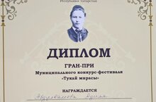 Поздравляем воспитанницу Абдувалееву Адилю она стала обладателем Гран-При в муниципальном фестивале - конкурсе "Тукай мирасы". Педагоги Марданова И.Т., Сунгатуллина А.Ф. Молодцы! Желаем дальнейших успехов!