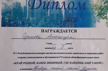 Сегодня на базе Бишнинской начальной школы – детский сад прошел V региональный конкурс проектных и творческих работ на тему «Край родной, навек любимый, где найдешь, ещё такой!». Участниками являлись дошкольники и школьники разных районов Республики Татарстан, всего 150 человек. Участники выступили в 4 номинациях. Воспитанница нашего детского сада Сиземова Александра заняла II место в номинации «Природа нашей малой Родины». Молодец!
