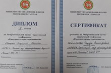 Сегодня на базе гимназии № 3 состоялась III Межрегиональная научно-практическая конференция «Известные татары современности». В рамках конференции была организованна встреча с поэтессой Эльмирой Шарифуллиной и работа 5 секций. Педагоги детского сада Макарова М.Е., Шамсиева Р.Р., Зарипова М.Х., приняли участие в работе секций и были награждены Дипломом III степени и Сертификатами участников.