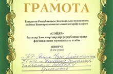 9 нчы төркем укучыларын һәм аларның педагоглары Марданова Илзирә Тәбрис кызы, Зәйнуллина Гүзәл Тәлгат кызын "Сәйяр" республика фестиваленең муниципаль этабында I урын яулаган лаеклы урын белән котлыйбыз! Иҗади уңышлар, яңа казанышлар телибез!