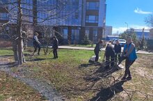 Все вместе дружно наводили порядок: собирали мусор, старые ветви деревьев, сгребали прошлогоднюю листву, пололи траву, приводили в порядок клумбы и сажали цветы.