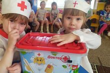Играли в сюжетно ролевые игры "У врача"," Мой доктор". Итогом проведения дня здоровья была лепка "Овощи и фрукты -полезные продукты"
