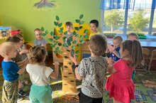 Сегодня в младшей группе «Лучики» состоялось тематическое занятие "Белая берёзка". Цель данной беседы: формирование представлений детей о значимости берёзы в природе и жизни человека, бережного отношения к деревьям .В этот день малыши группы № 5 обогатили представления о берёзе, как о живом существе (строение). Слушали стихи и любовались одним из символов России.Дети спели берёзе «Каравай», сделали ей подарок, украсили берёзку ленточкой. -