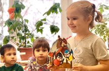 В детском саду прошли осенние утренники.С 28 по 29 октября в нашем детском саду прошли осенние праздники для всех возрастных групп. Красавица Осень заглянула в каждую группу и к большим и к маленьким, никого не оставила без внимания, а дети встречали её как дорогую гостью — с песнями, танцами, сказками, играми и шутками! Сказочные персонажи тоже порадовали играми и веселыми шутками. Но и, конечно, какой праздник без угощения? Осень принесла детям всех возрастных наливные и вкусные яблочки. Праздник доставил радость и удовольствие всем!