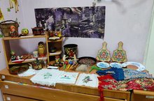 День открытых дверей в логопедической группе. На мероприятие были приглашены родители воспитанников и педагоги детского сада. Накануне в группе прошла тематическая неделя: «Народные промыслы», в течение которой детей знакомили с народными традициями и обычаями, с народным декоративно-прикладным искусством (Дымково, Городец, Филимоновская роспись, Хохлома). На занятиях по изодеятельности дети брали на себя роль художника и украшали изделия элементами различных росписей.Расширяли представления о народных игрушках (матрешки, городецкая, филимоновская игрушка). И даже организовали с помощью родителей мини-музей прикладного творчества.