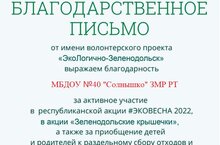 Балалар бакчасы "Яшел Үзән крышечки" республика акциясендә катнашты, аларда балалар һәм ата-аналар культурасы әйләнә-тирә мохитне саклауга һәм калдыкларны аерым җыюга тәрбияләнә.