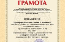 4 нче номерлы "Самоцветы" мәктәпкә әзерлек төркеме бию коллективы "Без дуслык һәм көчле!". Котлыйбыз!