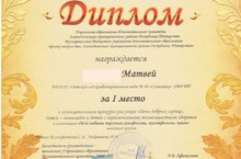 Победители муниципального конкурса рисунков "День добрых сердец" - Юля Х - 1 место, Матвей Н. - 1 место, Константин Т. - 1 место, София К. - 1 место; Алина К. - 2 место, Кира Н. - 2 место. Педагоги: Тихонова Ю.Р. , Ксенофонтова С.В., Андряшина Н.Н.