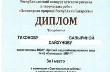 Работа Сафонова Е. предложена в публикацию лучших работ календаря Волжско-камского природного биосферного заповедника. (Воспитатели: Данилова С.М., Марченко Э.И.)