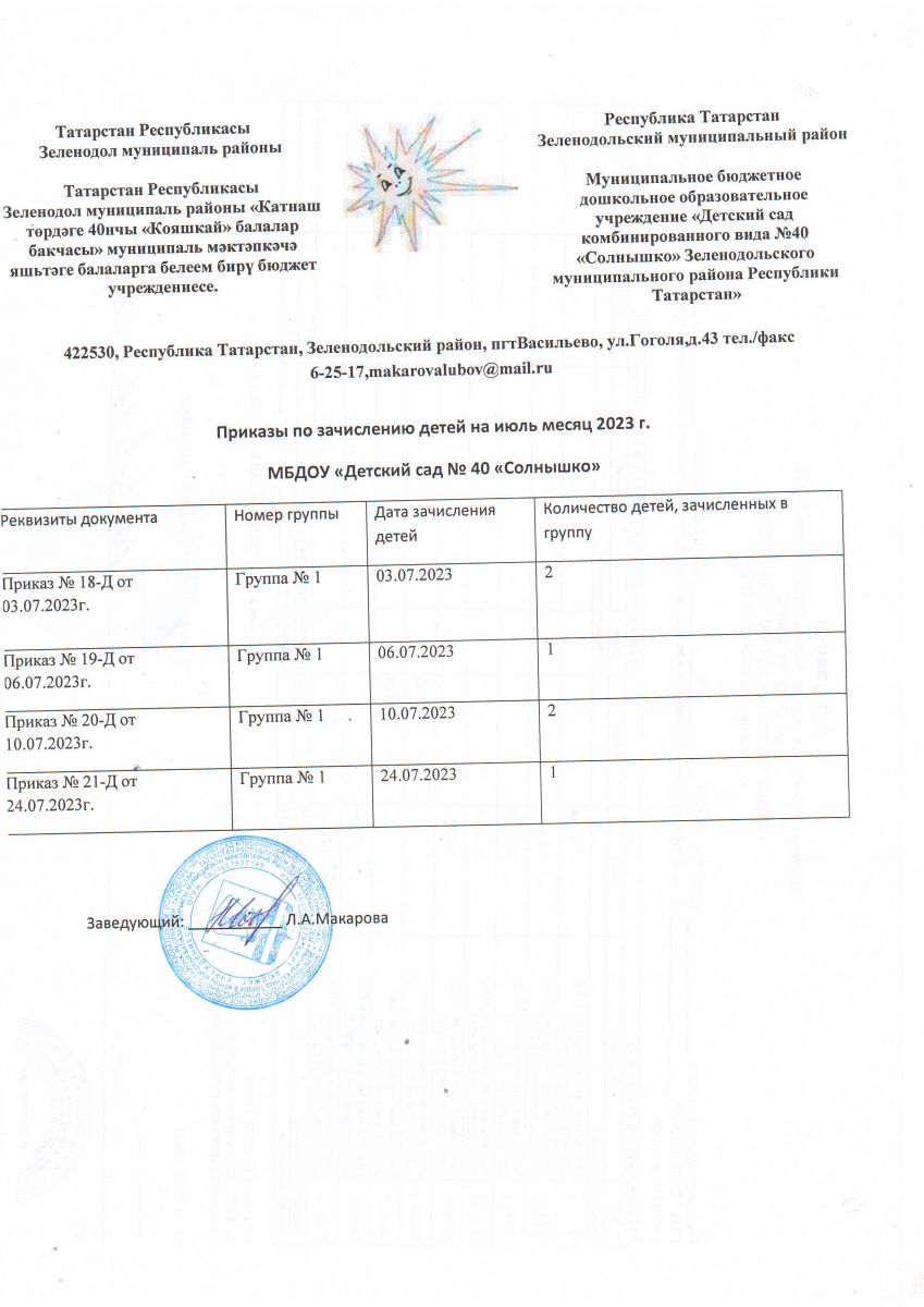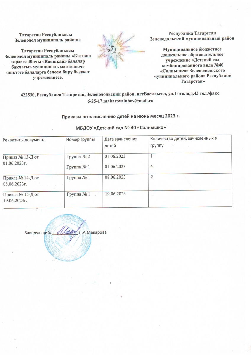 Приказ "О комплектовании на 2023-2024 учебный год"