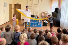 «День опытов и экспериментов». К нам в детский сад приходил «Профессор Гринс» познакомил детей с некоторыми свойствами воздуха и воды, научил проводить несложные опыты с использованием подручных средств и предметов.