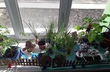 Традиционно весной в детском саду проходит конкурс "Огород на подоконнике". Детям очень нравится наблюдать за тем, как растут различные культуры.