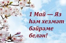 1 Май – Яз һәм хезмәт бәйрәме белән котлап, ныклы сәламәтлек, гаилә иминлеге һәм хезмәт уңышлары телибез! Туачак һәр көнегезгэ аяз күк йөзе, тынычлык алып килсен! -