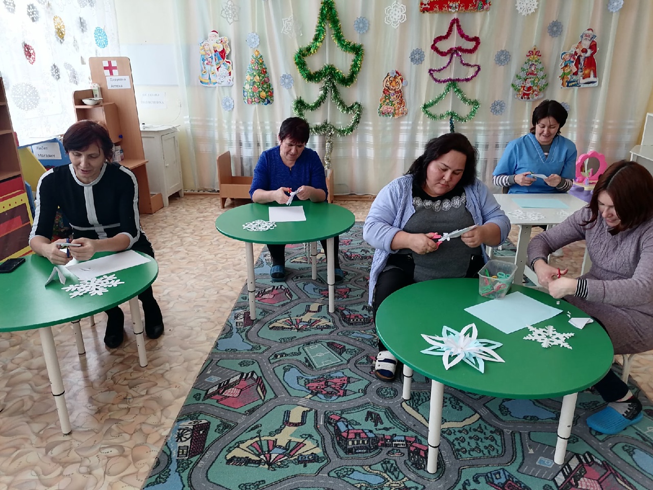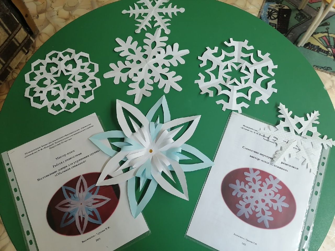 Мастер класс с родителями "Снежинки". Әти-әниләр белән мастер класс "Кар бөртекләре"