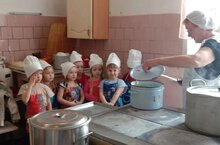 Массу положительных эмоций получили ребята в ходе экскурсии на кухню, где повар Гельнур Шартиновна рассказала и показала, из чего варят суп.