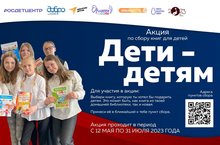 Приглашаем принять участие во Всероссийской акции «Дети-детям. Цель реализации всероссийской акции по сбору книг детской и подростковой литературы для детей, проживающих на территории новых субъектов Российской Федерации «Дети - детям», а также формирования бережного отношения к книге, воспитания чувств гуманизма и благотворительности.