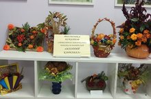 В холле на втором этаже оформлена выставка букетов совместного творчества детей и родителей "Осенний карнавал".