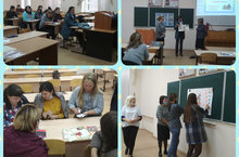 Сегодня на базе Зеленодольского филиала ЧОУ ВО "Казанский инновационный университет им. В.Г. Тимирясова" наши педагоги, Фасхиева С.Ф., Рахманова Г.З., Саягфарова В.А., Минеева И.В., Барскова О.Н., Миннебаева Е.Б., Мягкова Н.В., Рогулина О.Г., Мунина А.А., провели семинар-практикум для слушателей курсов по теме "Формы взаимодействия педагогов ДОО и родителей в развитии ребенка". Были использованы формы работы со слушателями: педагогический тренинг, деловая игра, брейн-ринг, стендовый доклад и выступления.