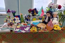 На выставке были представлены ручные работы, сделанные воспитанниками детского сада "Голчачак №8". Такая ручная работа способствует воспитанию инициативы, умения творчески подходить к труду. / Бакча балаларының эшләнгән эшләнмәләрен күргәзмә итеп куйдык. Пластилиннан диңгез җәнлекләре, төсле кәгазьләрдән кош- корт рәсемнәре, энҗе- мәрҗәннәрдән беләзекләр, йөзекләр һ.б. эшләнмәләр - барысы да күңелгә хуш килде. Балачакны хәтерләтте.