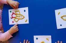 12 апреля - День космонавтики. Воспитанники лепили из пластилина космическую ракету./ Балалар галәмгә очучы очкычлар ясадылар. Ай, йолдызлар турында әңгәмә булды.